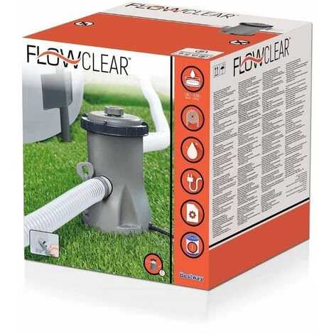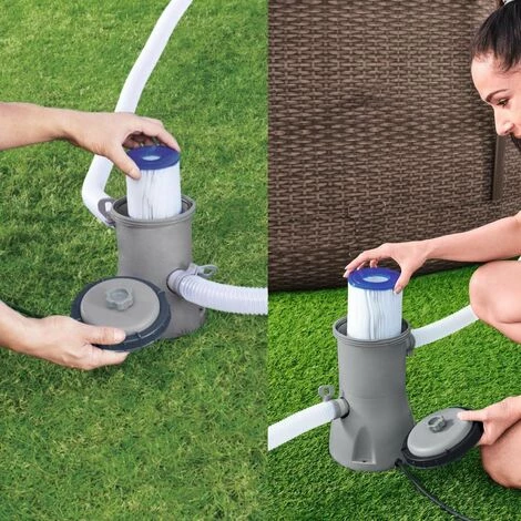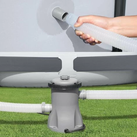 L’extrémité de l’un des tubes est reliée à l’entrée d’une pompe de filtration, tandis que l’extrémité de l’autre tube est reliée à une prise de courant. L’eau est pompée hors de la piscine et par le tube d’entrée, puis la cartouche filtrante la désinfecte et est pompée à nouveau par le tube de sortie. Ce processus est répété à maintes reprises, afin de fournir une eau propre, claire et hygiénique. L’épurateur de filtration Bestway de 1 249 litres est livrée avec un manuel d’instructions qui vous guidera dans le processus d’installation simple.