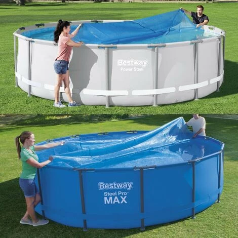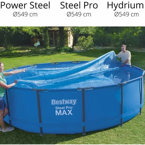 Bche Solaire pour Piscine Tubulaire Amovible Bestway. L’utilisation de la bche solaire offre plusieurs avantages: L’ utilisation de l’ énergie solaire pour chauffer l’eau pendant la journée, et garder l’eau chaude pendant la nuit et les jours nuageux. Protège la piscine de particules de saleté, ce qui permet d’ économiser du temps et de l’argent à l’ entretenir. Réduit l’ évaporation de l’eau jusqu’au 95%, ce qui nous permet d’ économiser de l’eau. Les bches solaires Bestway sont fabriquées avec un matériel résistant au rayons UVA.Bche Solaire pour Piscine Tubulaire Amovible Bestway.-Réchauffe et maintient la chaleur de l’eau.-Protège la piscine de la saleté.-Réduit l’évaporation.-Résistant au soleil.-Dimensions: 527 cm.-Valable pour: Steel Pro 549 cm et Power Steel 549 cm.-Garantie du fabricant, Bestway.