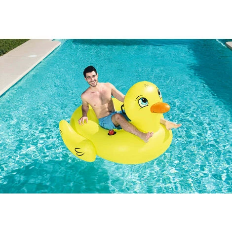 Petits et grands s’amuseront sans fin avec le canard géant gonflable. La bouée chevauchable extra-large Supersized Duck Rider promet du fun pour tous les âges. Équipée de solides poignées qui permettent de s’accrocher fermement pendant les aventures aquatiques, la bouée gonflable est conçue dans un vinyle résistant et testé pour durer. Le canard gonflable est aussi équipé d’un porte-gobelets pour garder votre boisson préférée toujours à portée de main. La bouée géante chevauchable est livrée avec un kit de réparation en cas de fuite intempestive. Barboter au soleil n’aura jamais été aussi amusant !