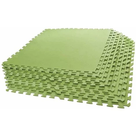 Informations produit: Dalles de sol emboitables souples Coloris: vert Dimensions: 78 x 78 cm Lot de 9 pièces Surface: 5.48 m2 Matière: polyéthtlène