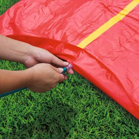 Bestway H20 Go. Slide-n-splash de bowling Altersempfehlung: 5-12 Jahre • Speed Ramp • Inklusive 6 aufblasbaren Kegeln zum Umrutschen • Zum Anschluss an einen Gartenschlauch • Strapazierfähiges 0,22/0,20 mm Vinyl