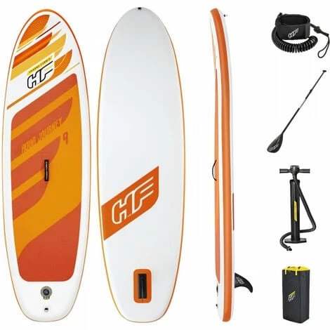 Paddle SUP gonflable Hydro-Force – Aqua Journey 274 x 76 x 12 cm – Contenu : Planche de paddle, pagaie, pompe a main, sac de transport, leash de surf, kit de réparation – 1 personne 100 kg avec 1 aileron arriere – Fabriqué en DropStitch – Surface antidérapante – Pagaie réglable en aluminium de 2,17 m (3 pieces)