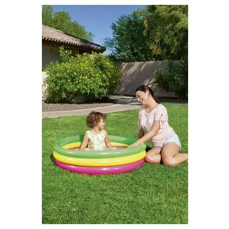 Piscine gonflable pour enfants Été Ensemble de Bestway avec structure de trois anneaux de couleurs différentes. Recommandée pour les enfants à partir de 2 ans, la piscine dispose d’un sol rembourré pour plus de confort. Avec une capacidad de 62 litres et des mesures de 105×25 cm, la piscine gonflable pour enfants Bestway PLAY Summer est un nouveau produit fourni avec une garantie du fabricant Bestway. Avertissement de seguridad Ne convient pas aux enfants de moins de 3 ans Contenu de la boîte Pisicina; gonflable; l’été; jardin