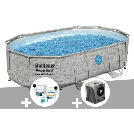 Kit Piscine Tubulaire Ovale Bestway Power Steel SwimVista Avec Hublots 4,88 X 3,05 X 1,07 M + Kit De Traitement Au Chlore + Pompe à Chaleur
