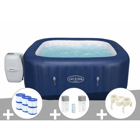 Offrez-vous une parenthèse de bien-être avec le spa gonflable Lay-Z-Spa Hawaii carrée Airjet de Bestway et ses 140 Airjet massants.
