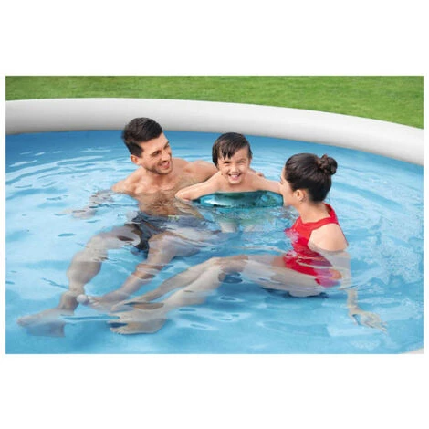 Quand l’été approche, lapiscine auto-portante ronde BESTWAY – 366 x 76 cm – 1249 L – motif rotin – Fast Set – 57274 n’aura aucun mal à se faire une place dans votre jardin ! Facile et rapide à monter grâce à sa conception auto-portante, elle est totalement adaptée pour que les enfants puissent s’amuser. Le liner DuraPlus avec 3 épaisseurs renforcées est là pour assurer une excellente résistance et éviter les perforations. La piscine peut contenir jusqu’à 1249 L d’eau et elle peut accueillir autant les petits que les grands. Tout a été pensé pour que l’installation soit sans prise de tête et sans qu’aucun outil ne soit nécessaire. Il suffit simplement de gonfler l’anneau supérieur ( pompe vendue séparément) puis la piscine se lèvera toute seule à mesure que l’eau la remplira. Quand vient l’hivernage, le rangement est lui aussi d’une grande simplicité. Le pack contient également un tapis de sol 366 x 366 cm qui convient pour cette piscine. Il permet d’avoir une meilleure installation et de protéger autant le terrain que votre bassin.