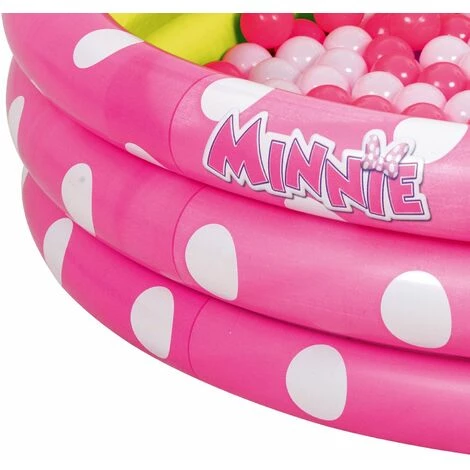 Piscina de bolas Minnie Mouse para los más pequeños de la casa. Las 25 pelotas de juego, que vienen incluidas, proporcionan una manera divertida para mejorar la coordinación ojomano y otras habilidades motoras a medida que se arrastran, caminan o corren detrás de ellas. Los colores brillantes de la piscina estimularán los sentidos de los niños. El suelo de juego es cómodo y un lugar para que se muevan de manera segura. Válvulas de seguridad Vinilo resistente probado 3 anillos iguales Incluye 25 bolas Parche de reparación Capacidad de agua: 140 L Contenido: Una piscina, 25 bolas, parche de reparación