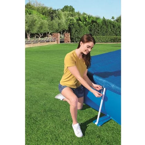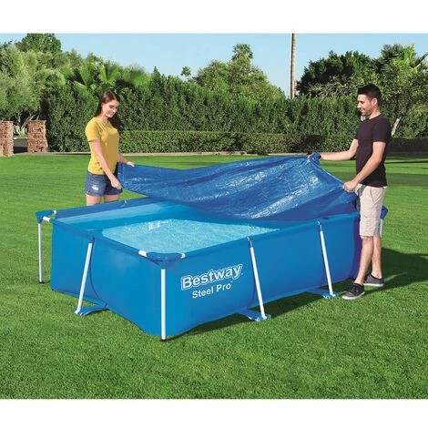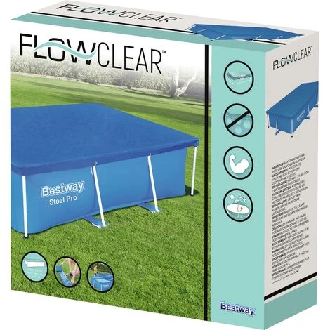 Cette couverture de piscine rectangulaire Bestway convient aux piscines de 170 cm de large et 259 cm de long. Cette couverture est conçue pour les piscines Bestway Steel Pro et Steel Pro Max. Le couvercle est muni de ficelles permettant de le serrer. De petits trous dans le couvercle Bestway empêchent l’accumulation d’eau. La couverture de piscine empêche la pollution de l’eau de baignade.