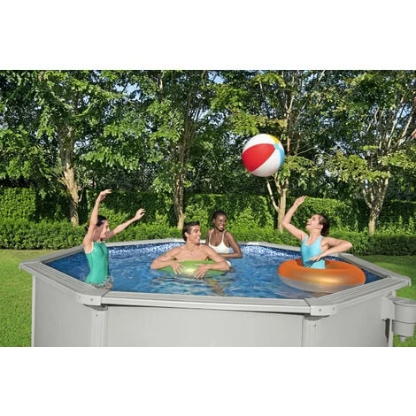Piscine hors sol ronde à parois pour toute la famille. Elle est parfaite pour les personnes qui souhaitent une piscine permanente dans leur jardin. Grâce à ses matériaux résistants comme l’acier galvanisé, la piscine peut être appréciée pendant de nombreux étés. La structure, la corniche supérieure et la charpente sont 100% acier recouvert de zinc pour éviter la rouille. Cet ensemble comprend un filtre à sable, un tapis de sol, une échelle de sécurité et une couverture.