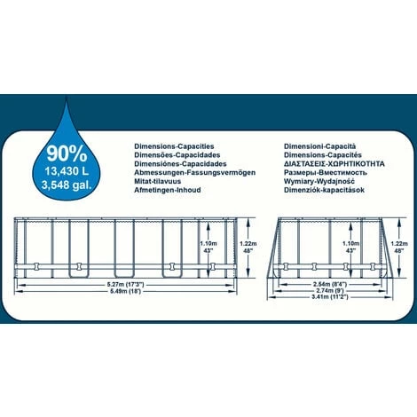 – Contenu : 1 piscine, 1 épurateur à cartouche, 1 échelle, 1 couverture, 1 distributeur de chlore et 1 patch de réparation.
