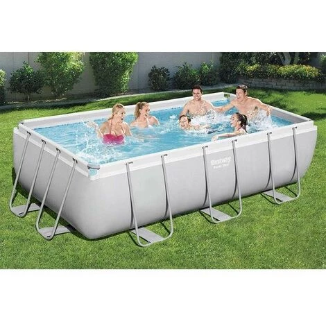 Kit Piscine rectangulaire Power Steel™ 13’3″ x 6’7″ x 39.5″ 4.04m x 2.01m x 1.00m Volume d’eau (90%)6,478L (1,711gal.)- Montage facile- Structure métallique résistante à la corrosion- Décor mosaique sur le fond et les parois du bassin- Liner ultra résistant PVC & polyester 3 couches- Parois en PVC renforcé et polyester triple couche (0,40 – 0,80 mm)- Valve de drainage intégrée permettant le raccord au tuyau d’arrosage (adaptateurs inclus)- 3 couleurs assorties.- La forme rectangulaire permet la plus grande surface de nage et de baignade possible- Kit de réparation pouvant s’utiliser sous l’eau- Le liner de cet piscine est fabriqué en Tritech™, un matériau renforcé composé d’une couche de polyester entourée de deux couches de PVC ultra resistant. Cela donne une épaisseur totale de 0.40-0.80mm (16-32 gauge) selon les dimensions des bassins, et offre une resistance extrème et une durée de vie très élevée. Inclus un bassin, #58383 pompe de filtration (220-240V~, 2006 L débit, 1817 L de débit système), #58335 échelle, compatible avec les cartouches 58094(Ⅱ) 220-240V Carton imprimé L’installation requiert approximativement 30 minutes pour 2-3 personnes sans compter le remplissage