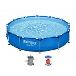 Pack BESTWAY Piscine Tubulaire Ronde – Steel Pro – 366 X 76 Cm – Tapis De Sol – 366 X 366 – Bleu