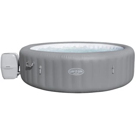 Le spa gonflable Bestway LAY-Z-SPA GRENADA AirJet, 8 Places, Coloris gris, 190 Airjet™, panneau de contrôle intégré. Volume 1.350L, Température 40°, Technologie DuraPlus, Structure TriTech, Système FreezeShield, Système ChemConnect…