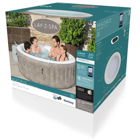Spa Gonflable BESTWAY – Lay-Z-Spa Madrid – 180 X 66 Cm – 2 A 4 Places – Rond (Inclus : Couverture, Pompe, Cartouche Et Diffuseur