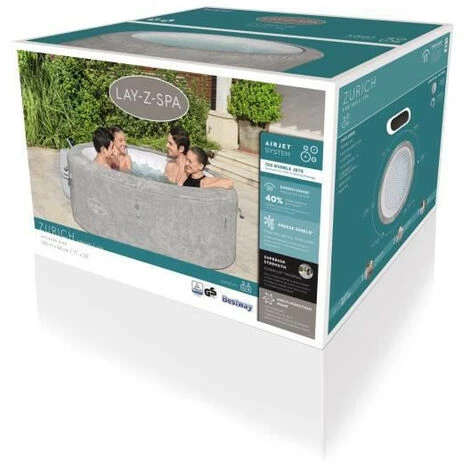 Spa Gonflable BESTWAY – Lay-Z-Spa Zurich – 180 X 66 Cm – 2 A 4 Places – Rond (Inclus : Couverture, Pompe, Cartouche Et Diffuseur