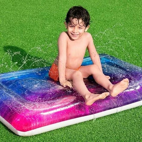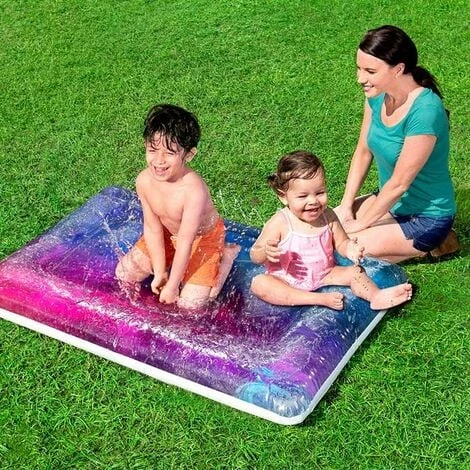 Tapis Ă eau Galaxy 130 x 90 cmBuse de pulvĂ©risation sur le dessus du tapis, maintenant la surface mouillĂ©e et Ă©claboussant les enfants. Valve de drainage sous le tapis. Se connecte au tuyau d’arrosage. Renforts intĂ©rieurs pour plus de stabilitĂ©. CapacitĂ© en eau : 110 L. Patch de rĂ©paration.